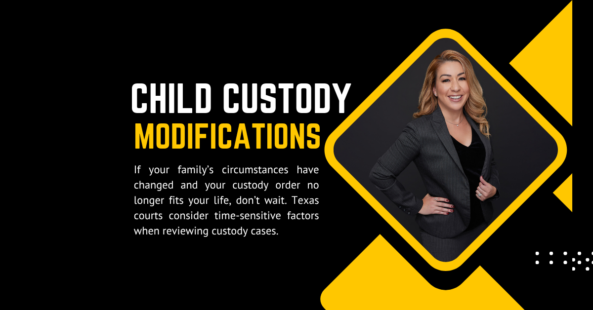 If your family’s circumstances have changed and your custody order no longer fits your life, don’t wait. Texas courts consider time-sensitive factors when reviewing custody cases.
